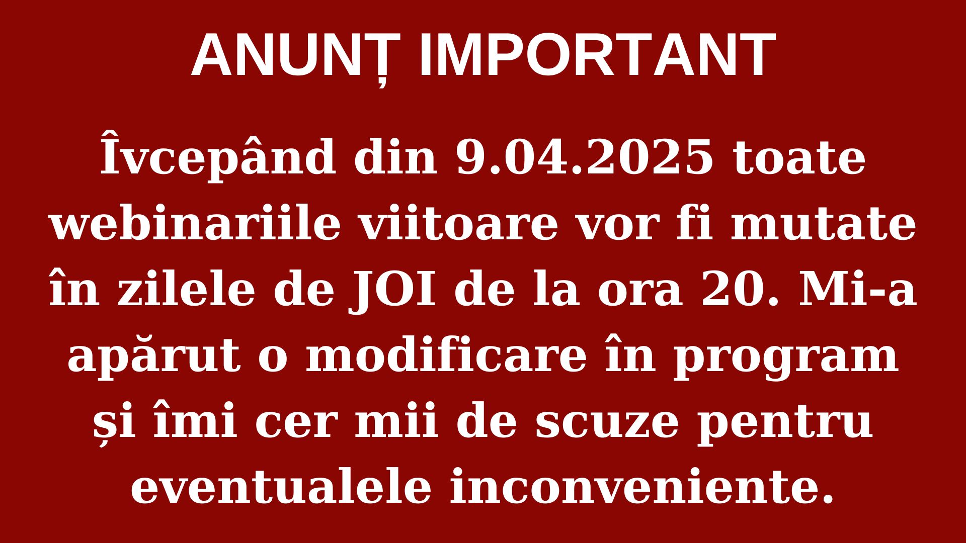 Vă anunț cu drag că am încărcat la secțiunea Webinarii: